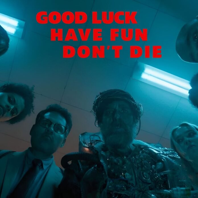 Good Luck, Have Fun, Don’t Die is a bold and unusual sci-fi dark comedy that mixes time travel, humor, and a warning about artificial intelligence.